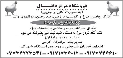 آدرس: برازجان، خ شهید چمران (بیمارستان)، روبروی سازمان تبلیغات اسلامی